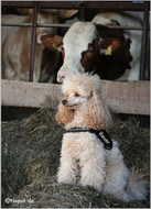 Das Bad: der Pudel wird mit handwarmem Wasser vollkommen nass gemacht und mit einem rückfettenden Shampoo für wolligen Haar vollständig einshampooniert und dann gründlich ausgewaschen. Man kann auch noch Balsam oder Conditioner verwenden. Wichtig ist, dass alles gut ausgewaschen wird und keine Shampoo- oder Balsamrückstände im Fell bleiben. Danach wird der Pudel mit einem Froteehandtuch gut abgetrocknet (drücken, nicht rubbeln) und trocken gefönt. Während dem Fönen kann man das Fell ausbürsten, damit es sich nicht kräuselt. Das ist besonders von Vorteil, wenn das Fell danach geschoren worden soll.